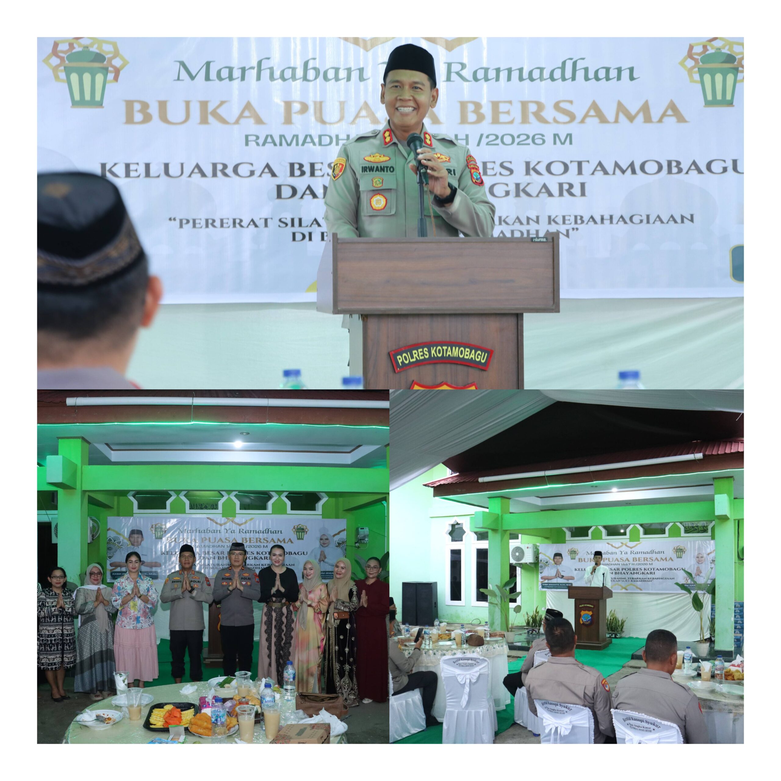 Rangkaian kegiatan diawali dengan pembacaan Ummul Kitab Surah Al-Fatihah, kemudian dilanjutkan dengan sambutan Kapolres Kotamobagu. Dalam sambutannya, Kapolres menyampaikan bahwa kegiatan buka puasa bersama ini menjadi momentum penting untuk mempererat hubungan kekeluargaan serta memperkuat soliditas dan sinergitas dalam pelaksanaan tugas sebagai pelindung, pengayom dan pelayan masyarakat.