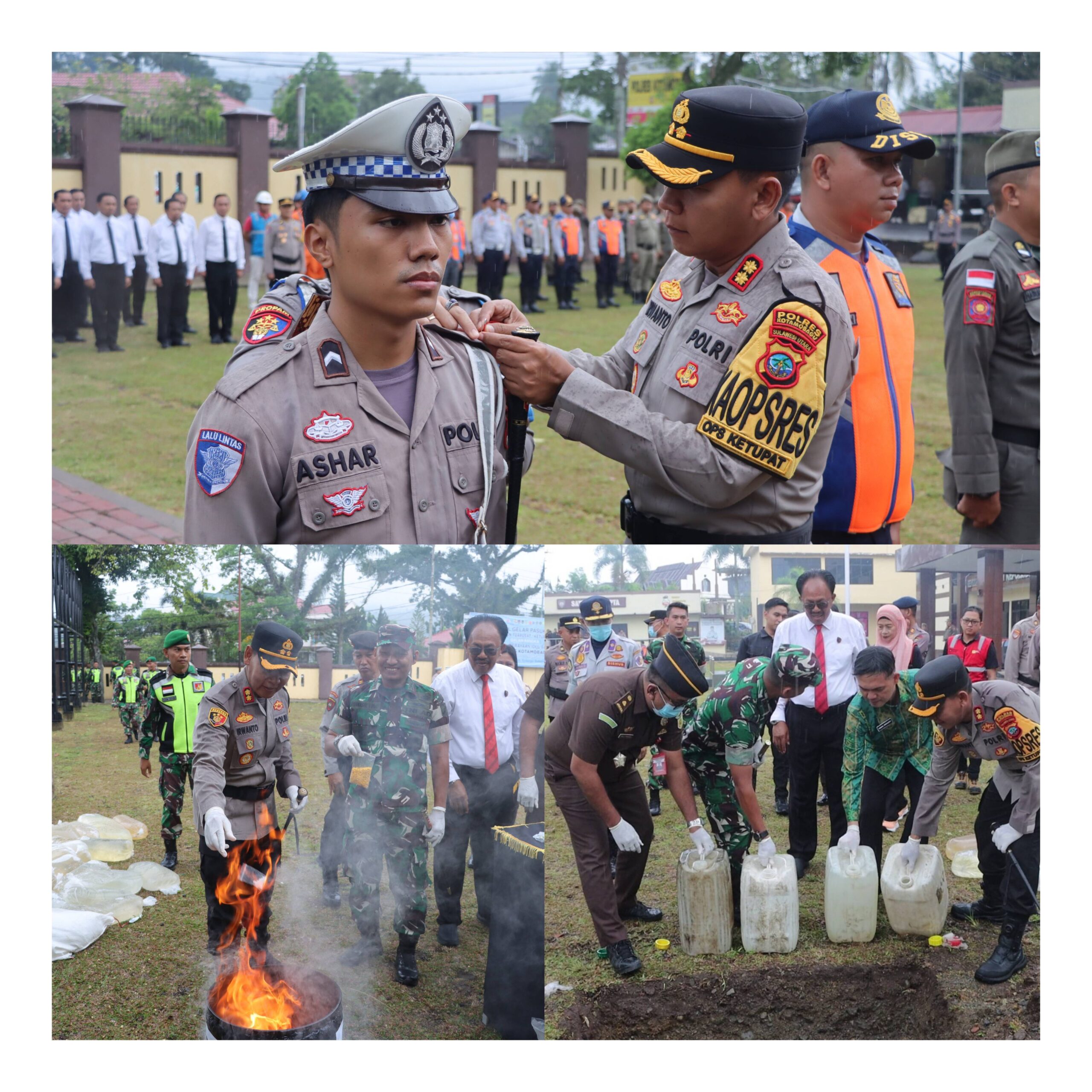 Usai pelaksanaan apel, rangkaian kegiatan dilanjutkan dengan acara pemusnahan barang bukti hasil Kegiatan Rutin Yang Ditingkatkan (KRYD). Barang bukti yang dimusnahkan terdiri dari berbagai jenis narkotika serta ribuan liter minuman keras yang berhasil disita oleh jajaran Polres Kotamobagu dalam operasi cipta kondisi beberapa waktu terakhir.