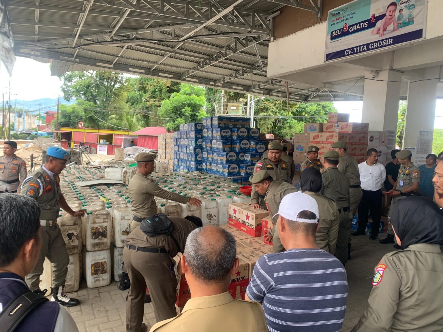 Dari Toko Tita, Satpol PP menyita lebih dari empat ribu botol Bir Bintang ukuran 620 ml serta berbagai merek lainnya seperti Heineken, Draft Bir, Valentine, hingga Guinness.