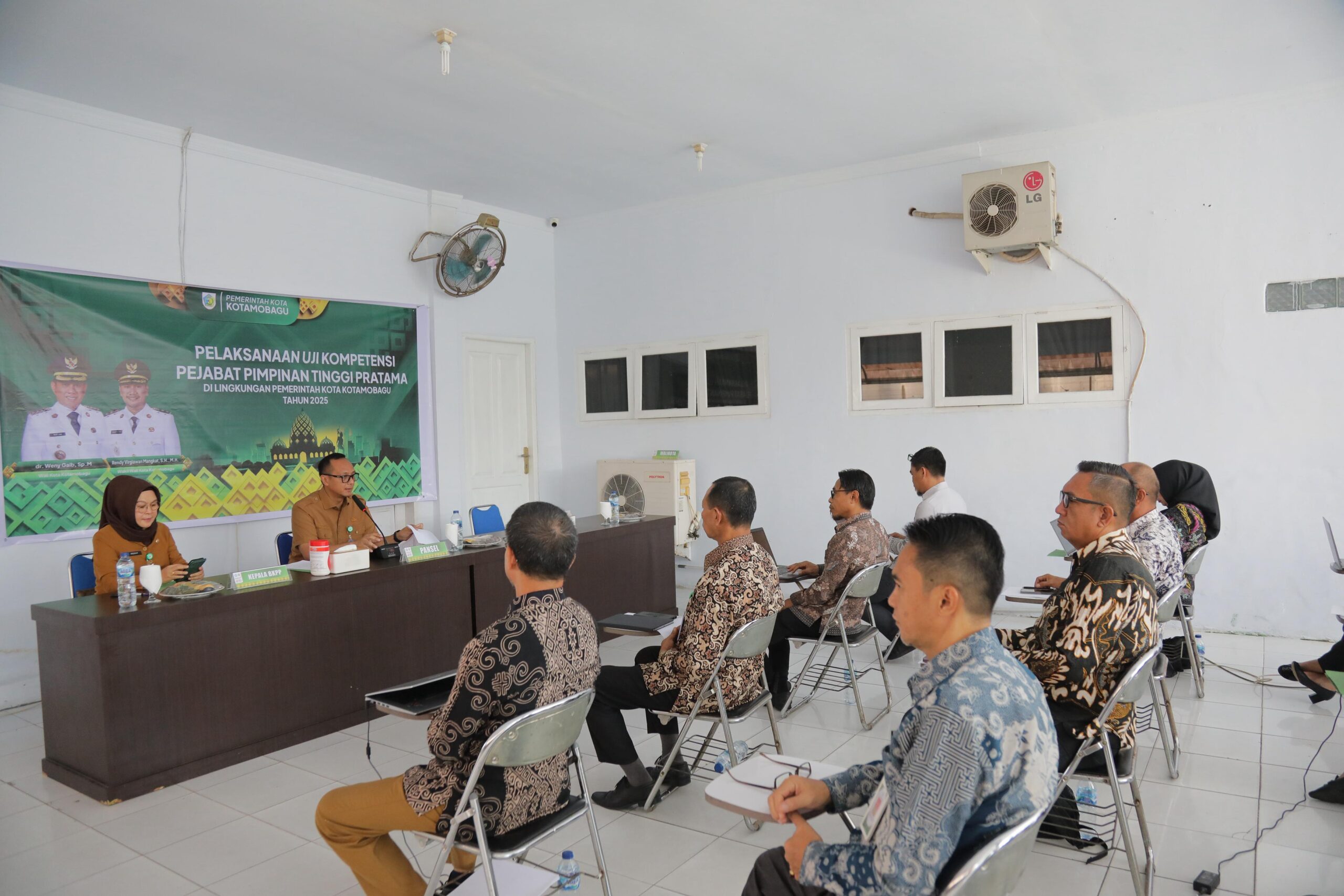 BERITATOTABUAN.COM, KOTAMOBAGU – Sekretaris Daerah Kota Kotamobagu, Sofyan Mokoginta, S.H., M.E., mewakili Wali Kota Kotamobagu, secara resmi membuka kegiatan Uji Kompetensi dan Evaluasi Kinerja Jabatan Pimpinan Tinggi (JPT) Pratama di lingkungan Pemerintah Kota Kotamobagu, yang digelar di Aula Rumah Dinas Wali Kota, Senin (20/10/2025).