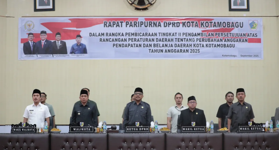 KOTAMOBAGU – Wali Kota Kotamobagu, Weny Gaib, menghadiri Rapat Paripurna DPRD Kota Kotamobagu dalam rangka pengambilan persetujuan atas rancangan peraturan daerah (Ranperda) Perubahan APBD Kota Kotamobagu tahun 2025, bertempat di gedung DPRD Kotamobagu, Jumat (26/9/2025).
