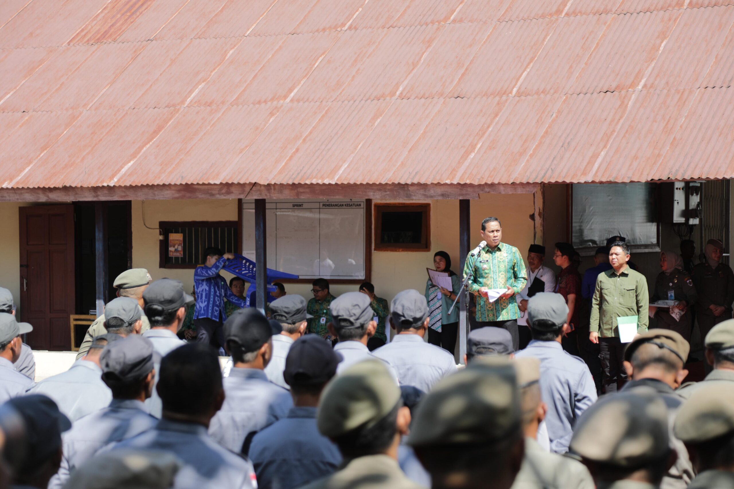 Jajaran Forkopimda, pejabat daerah, dan anggota Satlinmas menghadiri acara di halaman Kantor Satpol PP Kota Kotamobagu.