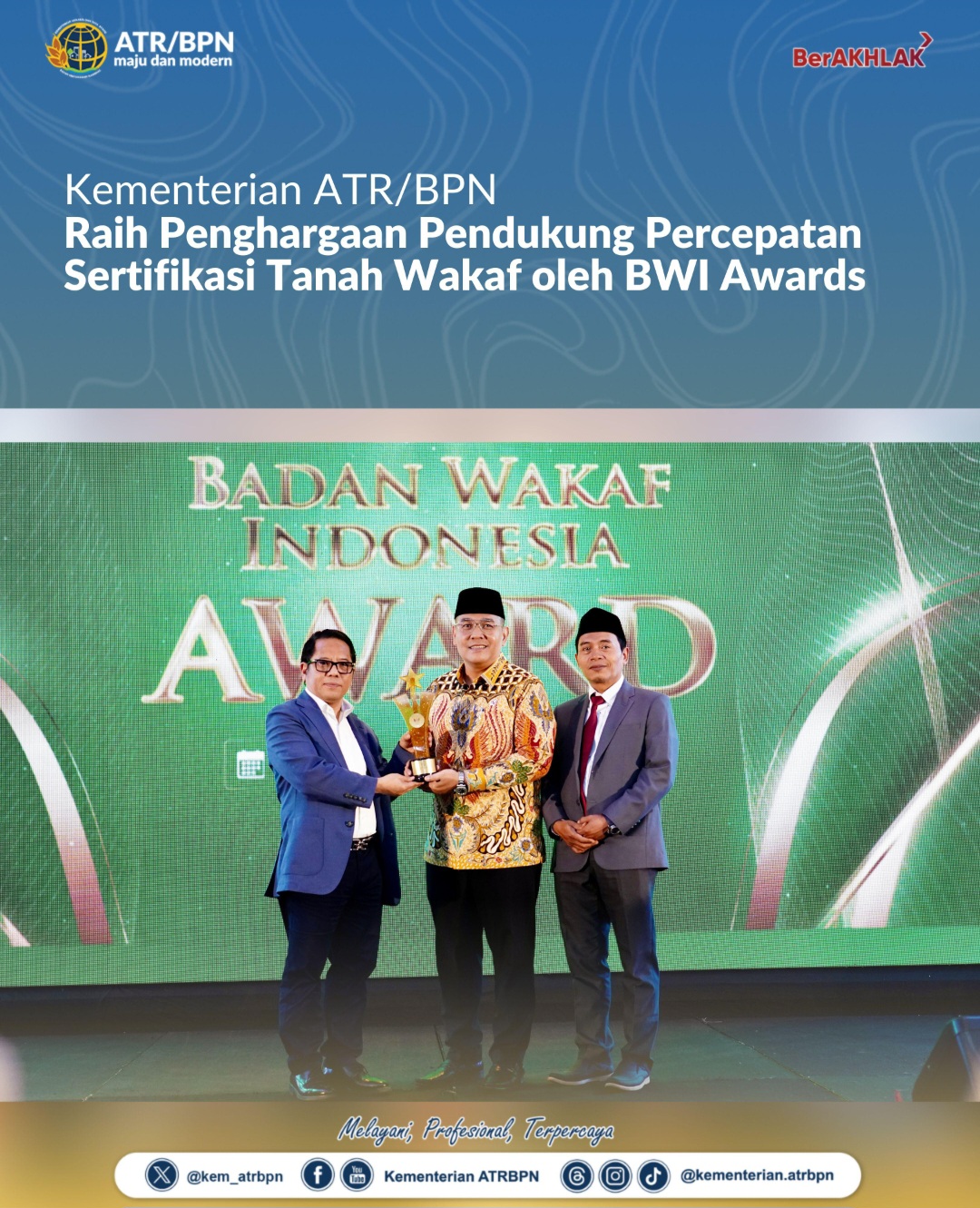 Dalam kegiatan ini, penghargaan untuk Kementerian ATR/BPN diserahkan oleh Kepala BWI, Kamaruddin Amin. Kegiatan ini juga dibuka oleh Ketua Majelis Permusyawaratan Rakyat (MPR) RI, Ahmad Muzani. Turut hadir memberikan sambutan, Menteri Agama, Nasaruddin Umar. Kegiatan ini juga diikuti oleh perwakilan BWI dari seluruh Indonesia. (*)