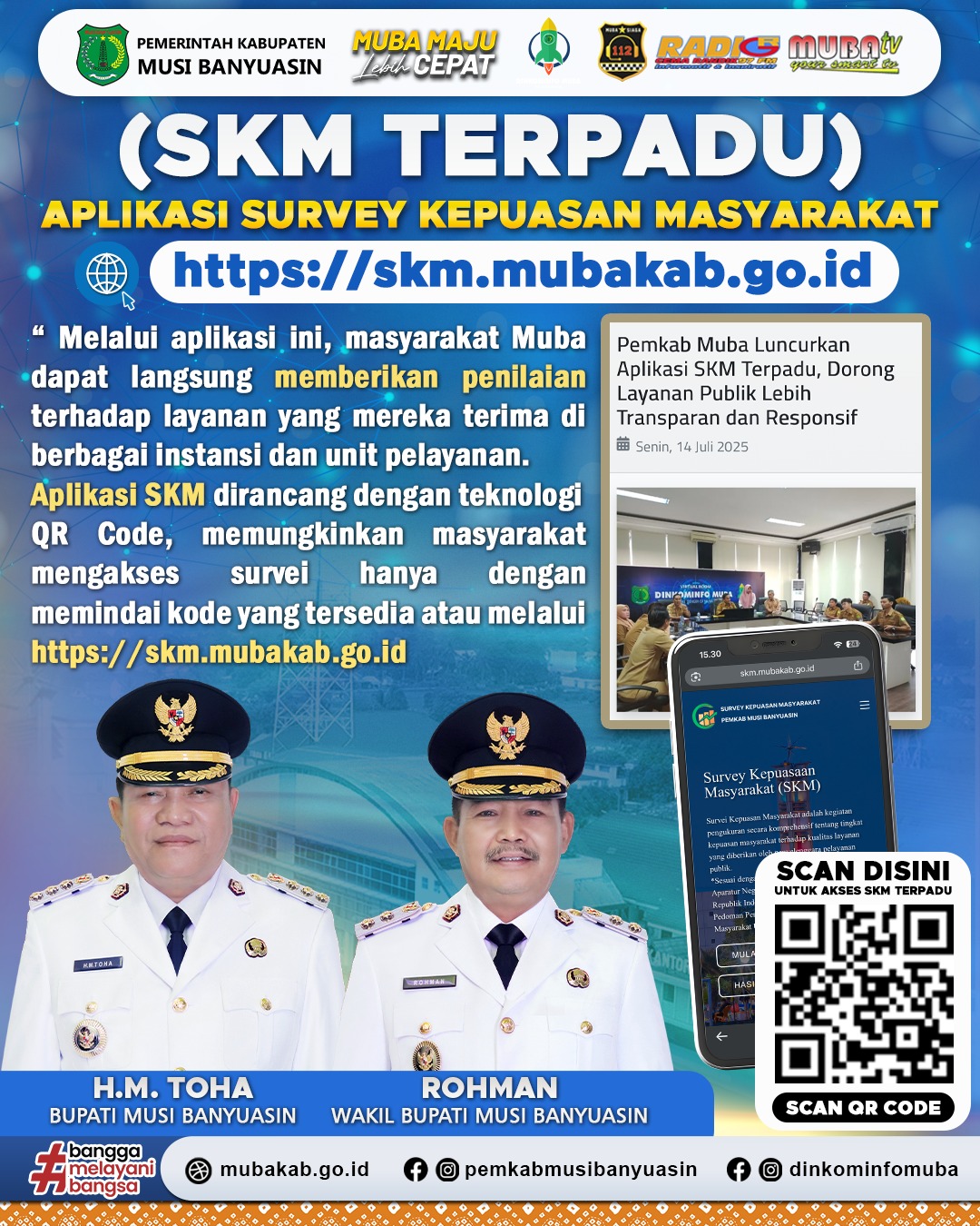 Daud Amri Sekretaris Dinkominfo Muba menjelaskan bahwa Aplikasi SKM terpadu merupakan inovasi terbaru Pemkab Muba untuk memudahkan masyarakat dalam menyampaikan penilaian terhadap pelayanan publik. Melalui aplikasi ini, warga dapat memberikan umpan balik secara langsung dan real-time setelah menerima layanan di berbagai unit, mulai dari Mal Pelayanan Publik hingga dinas-dinas terkait.