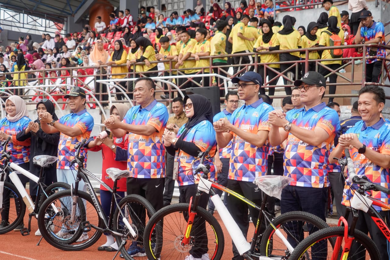 Bukan hanya sekedar senam bersama, pada kesempatan ini juga dilakukan Launching Muba Fit 2025 hingga dibagikan berbagai doorprice menarik, Selasa (9/9/2025).