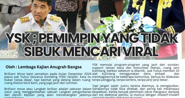 YSK ; Pemimpin Yang Tidak Sibuk Mencari Viral Berita Terkini, Opini, Sulut|Rabu, 29 Oktober 2025oleh redaksi Oleh : Lembaga Kajian Anugrah Bangsa Brilliant Move kami sematkan pada