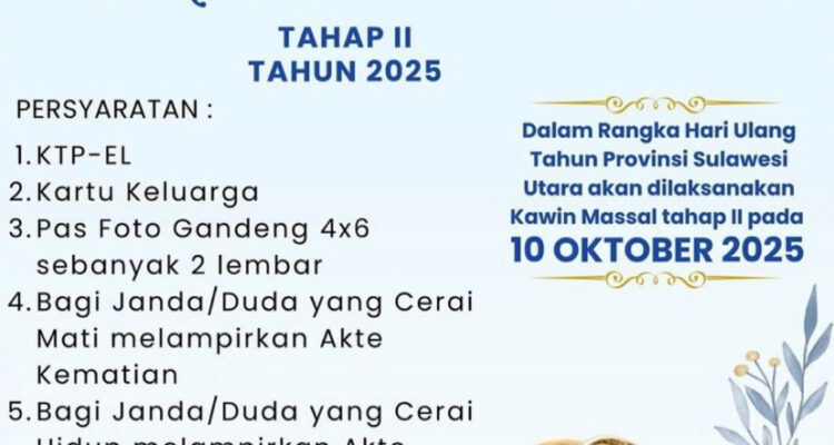 SULUT -Gubernur Yulius Selvanus kembali menggulirkan Program Kawin Massal Tahap II melalui